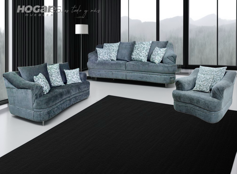 Una sala tradicional de 3 piezas, pero muy vanguardista con su diseño acompañada de cojines floreados combinados para respaldo y decorativos, la hacen de las preferidas por nuestros clientes.